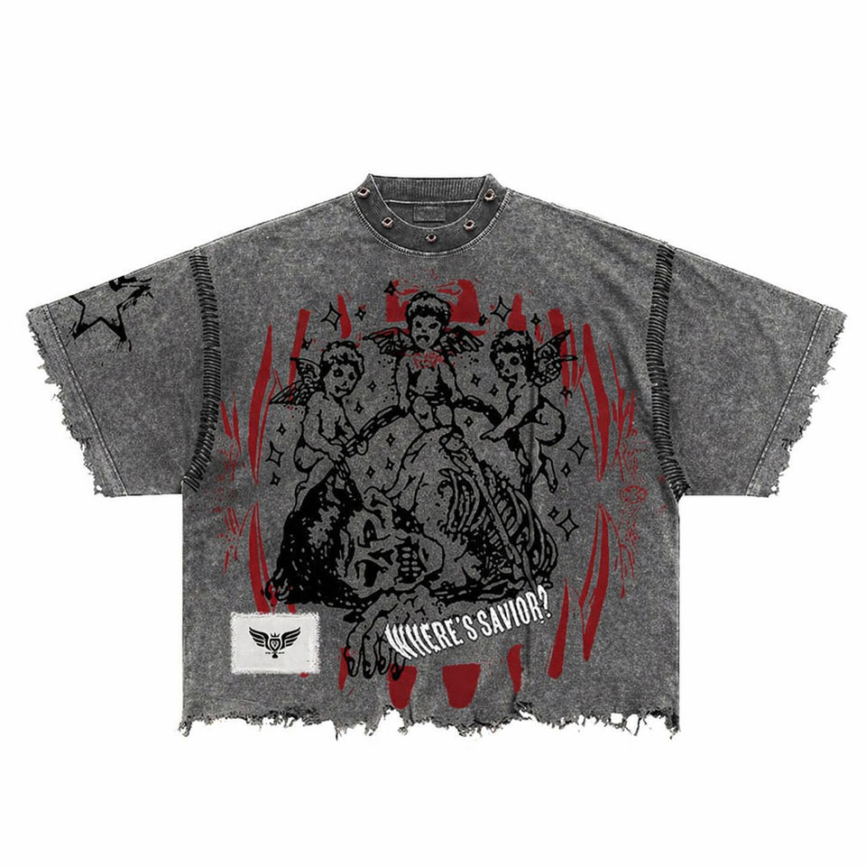 Type de produit ::T-shirt graphique vintage délavé et usé