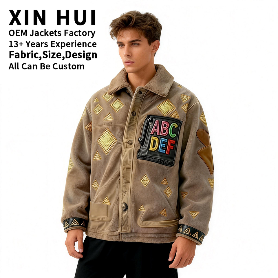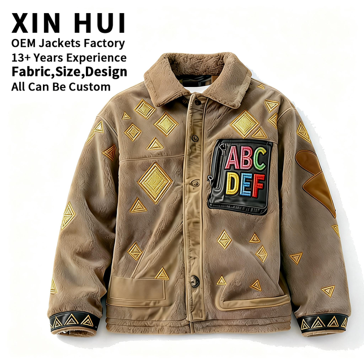 Blouson Bomber Vintage Personnalisé 2026 en Polyester avec Épingle Brodé sur le Col Montant – Vêtement d'Extérieur Hiver Imperméable et Coupe-Vent