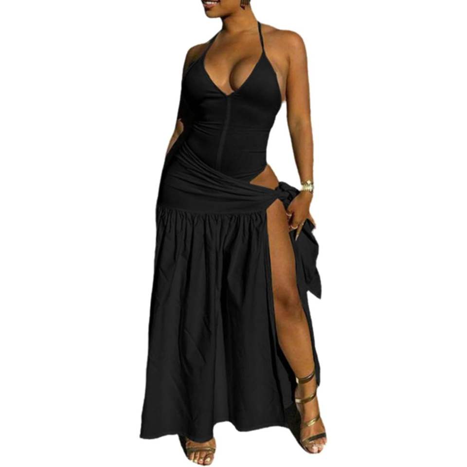 Ensemble 2 pièces personnalisé pour femme 2026 : Haut dos nu sans manches et jupe longue fendue en mousseline respirante – Tenue d'été pour voyage