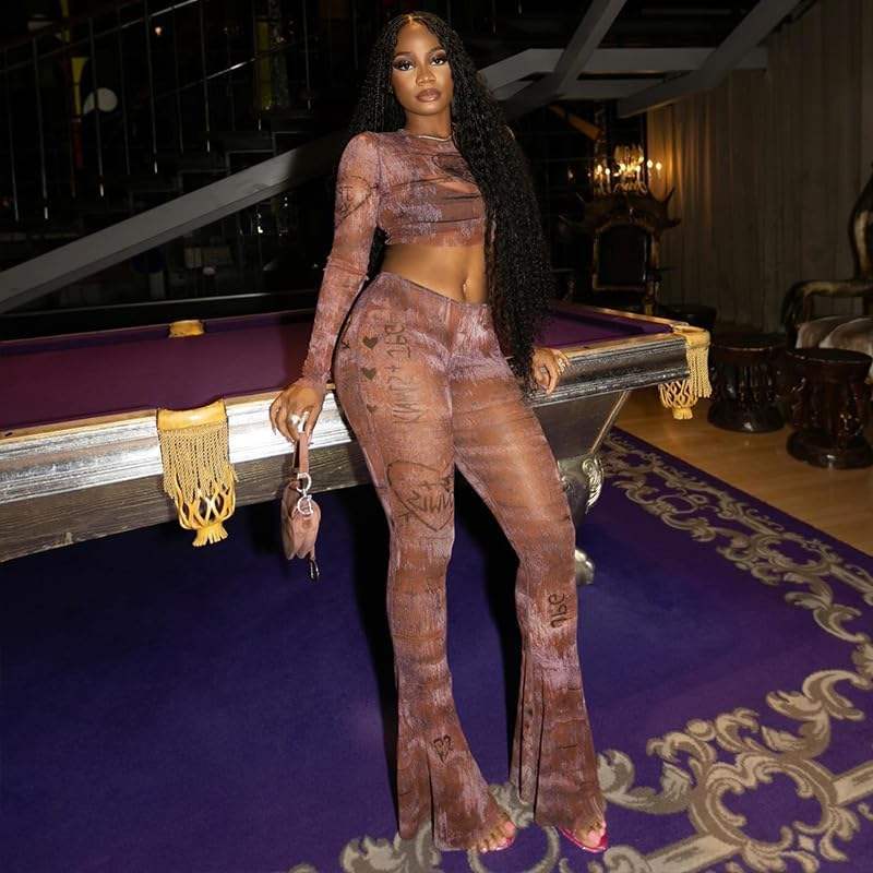 Ensemble 2 pièces personnalisé 2026 pour femme : Haut moulant en maille à col montant et pantalon élastique transparent sexy pour clubbing