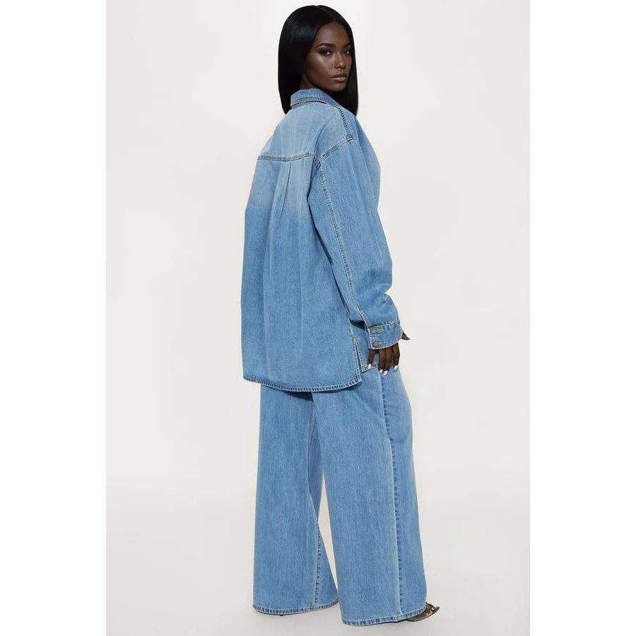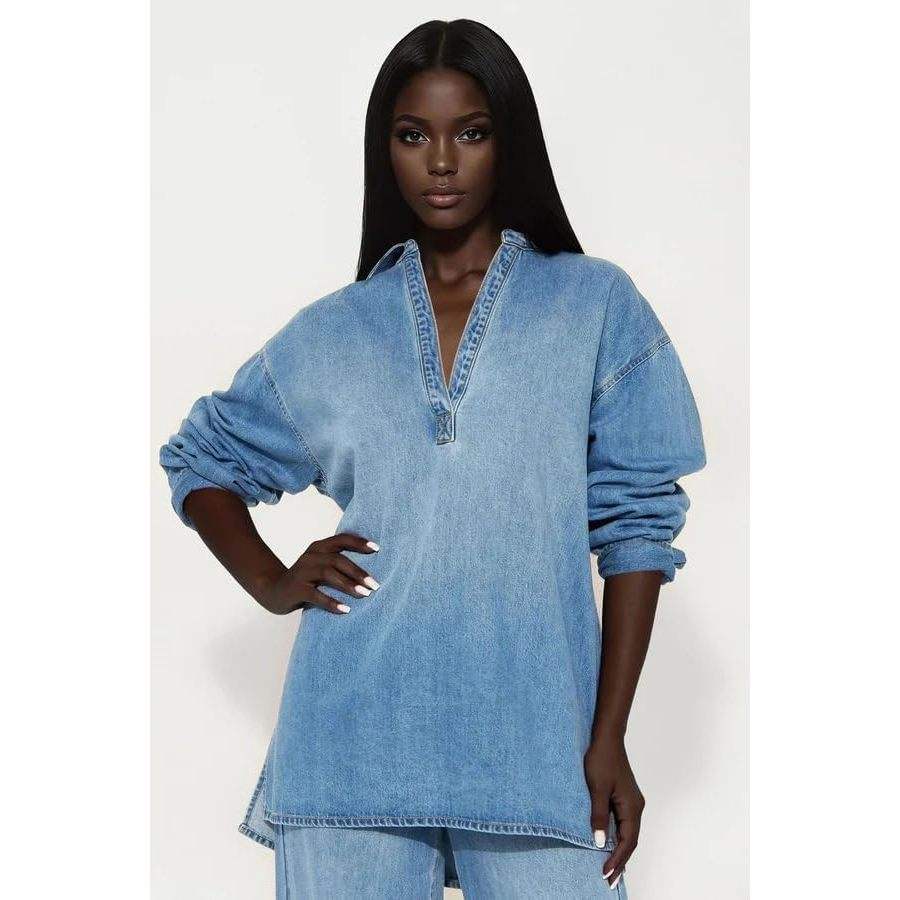 Ensemble en jean personnalisé 2026 pour femme, haut à manches longues et jean large, tenue 2 pièces style Y2K streetwear, design portefeuille ceinturé, 100% coton