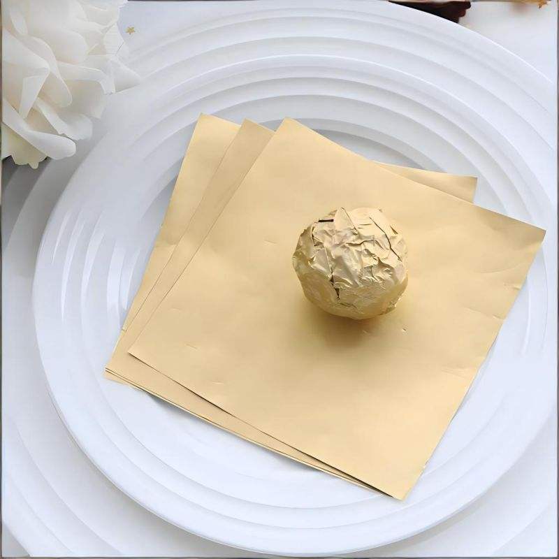 Custom 20x20 cm Gold Food Grade Chocolate Candy Wrappers Aluminium Foil Paper Wrapping Sheets for Treats
