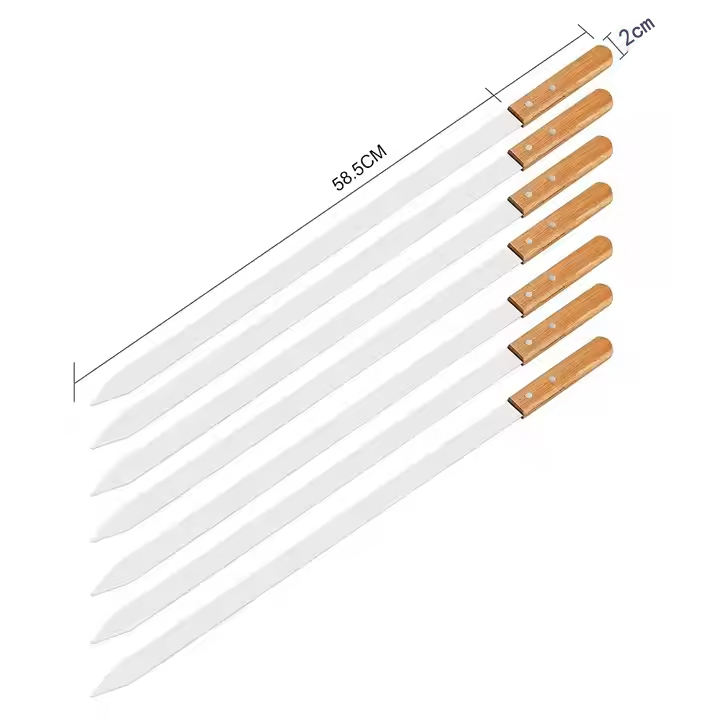 Brochettes de barbecue personnalisées en acier inoxydable de 23 pouces avec manche en bois, brochettes à kebab, bâtonnets de grillade plats, lot de 7 avec sac