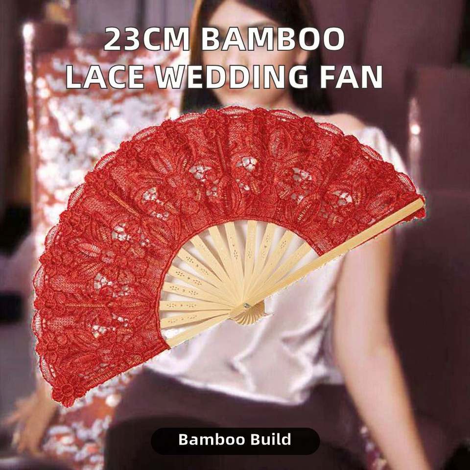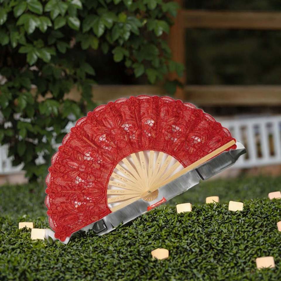 Éventail pliant artisanal en bambou de 23 cm, avec dentelle espagnole brodée, portable, pour mariée