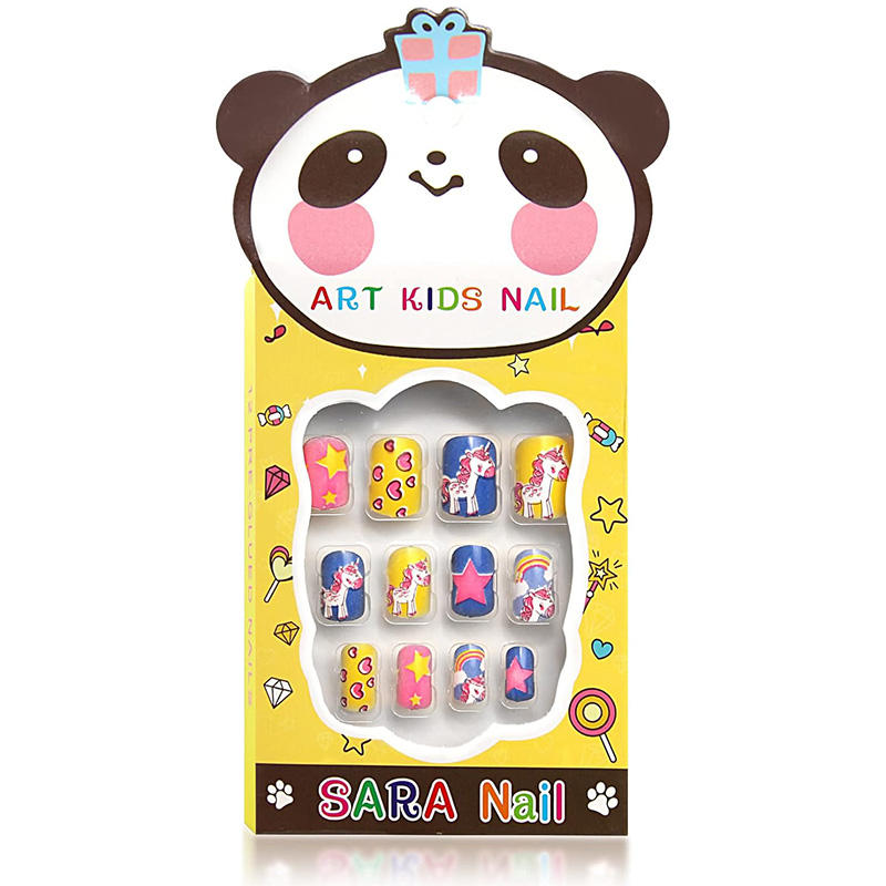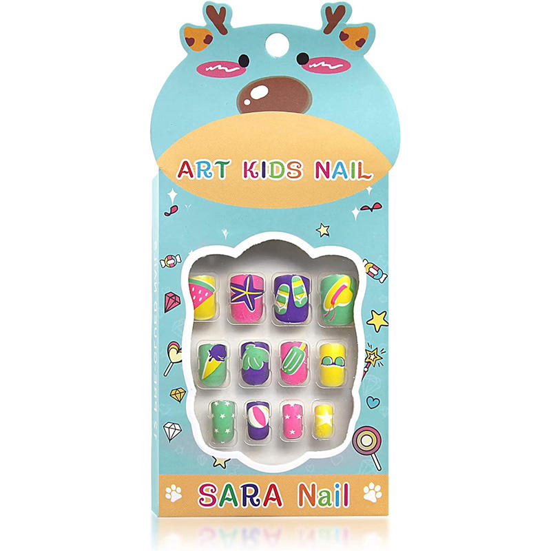 Ongles artificiels personnalisés à presser 24 pièces pour enfants Matériau ABS Carré coloré et motifs d'amande avec de la colle pour les doigts des enfants