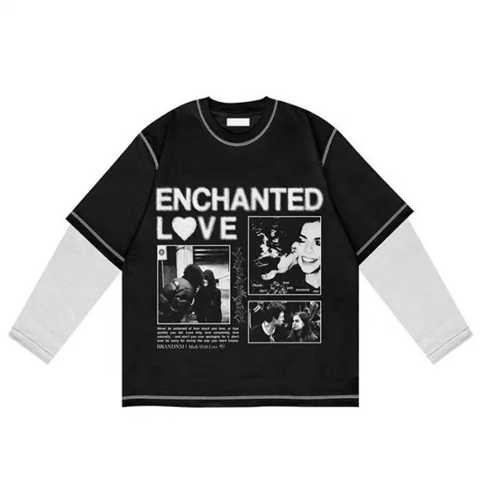 T-shirts surdimensionnés à manches longues en coton 100% respirant et à séchage rapide, col rond, double couche 280 g/m², personnalisables, vente en gros