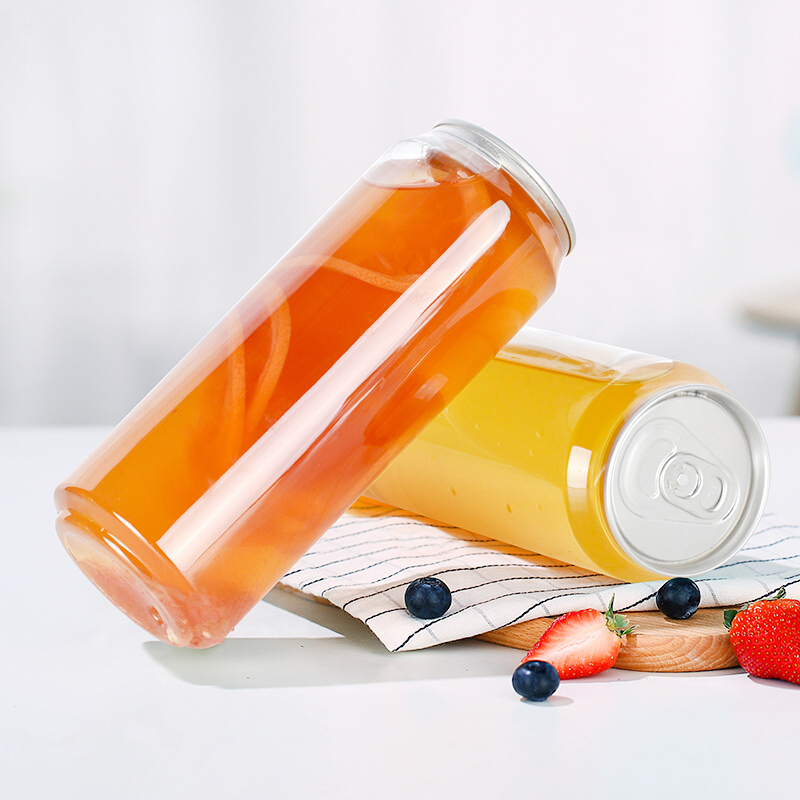 Canette en plastique PET personnalisée de 250 ml/375 ml/500 ml/750 ml pour smoothies, bubble tea, avec anneau de traction, qualité alimentaire, sans BPA