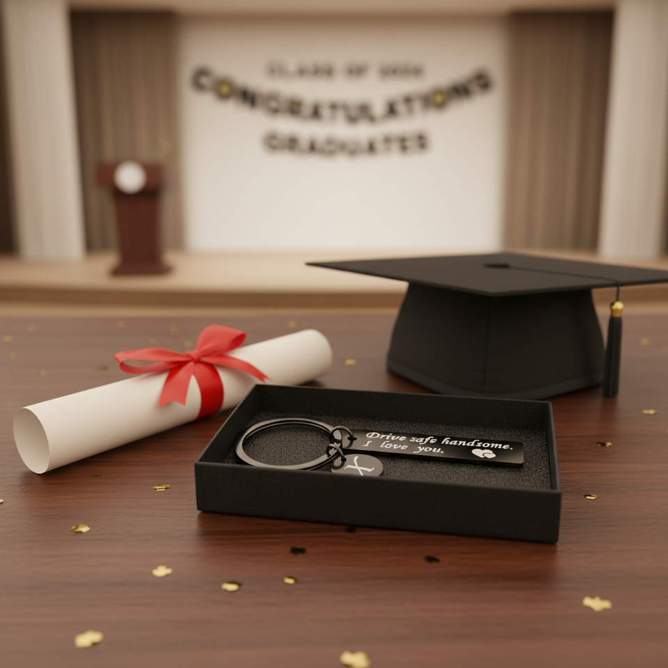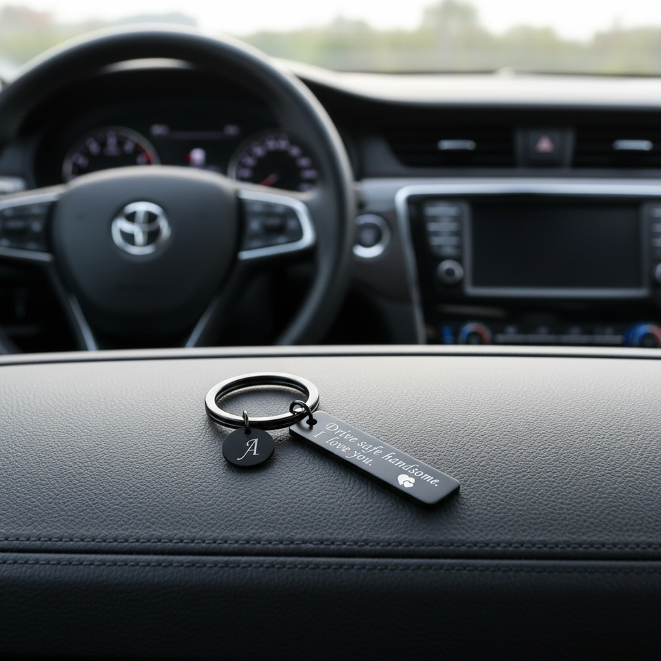 Porte-clés en acier inoxydable personnalisé avec impression UV de 26 lettres, luxe, conduite en toute sécurité, cadeaux de voiture personnalisés, cadeaux de remise de diplôme