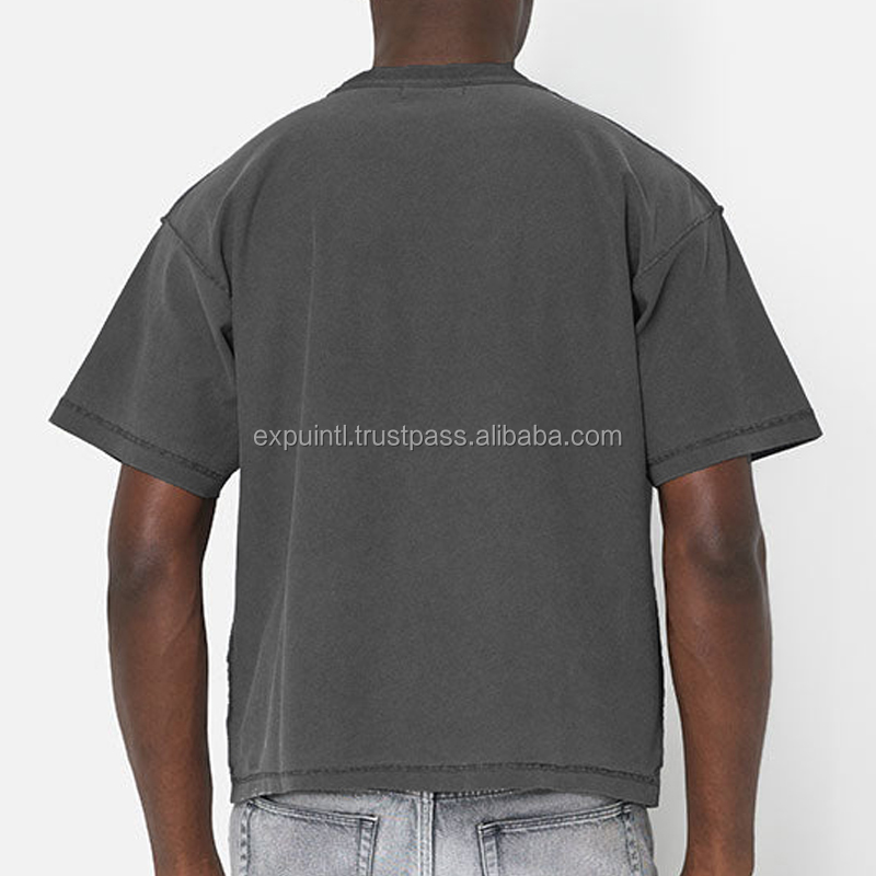 T-shirt régulier personnalisé 220 GSM poids lourd coton Vintage épaule tombante Boxy Fit surdimensionné lavé haute rue T-Shirt hommes