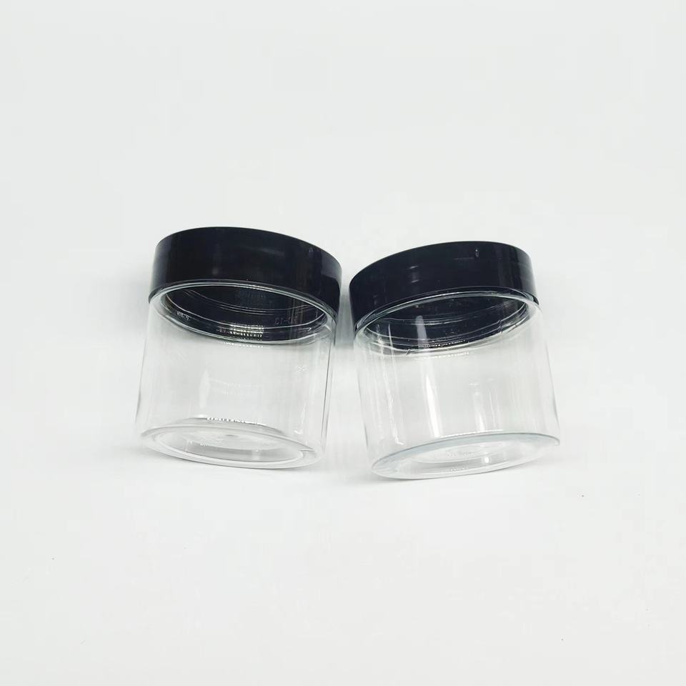 Pots de fleurs de thon en plastique PET personnalisés de 3.5g 100ml avec couvercles noirs scellés-contenants d'emballage comestibles en plastique transparent 2oz 4oz Zkittlez
