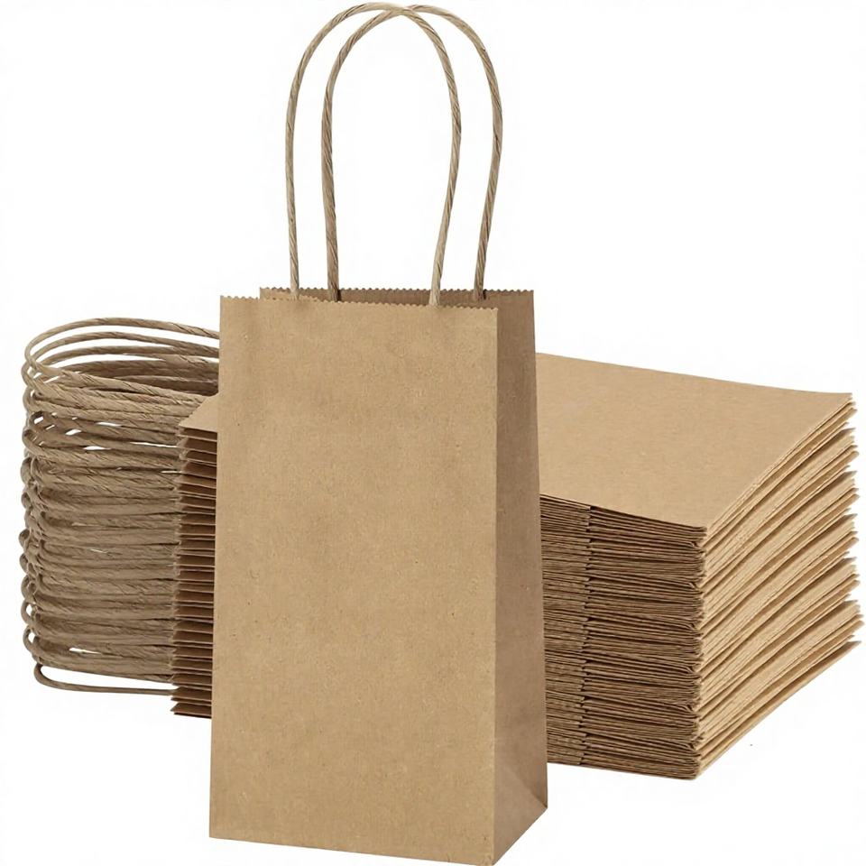 Sacs cadeaux miniatures personnalisés 3,5x2,4x6,7 pouces, sacs cadeaux bruns avec poignées en papier torsadé, en vrac, recyclables