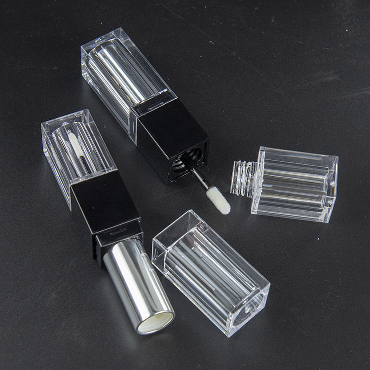 Tube de brillant à lèvres double embout personnalisé de 3,8 ml + tubes de rouge à lèvres 2-en-1, emballage plastique transparent, forme carrée, conteneur de gloss, sérigraphie