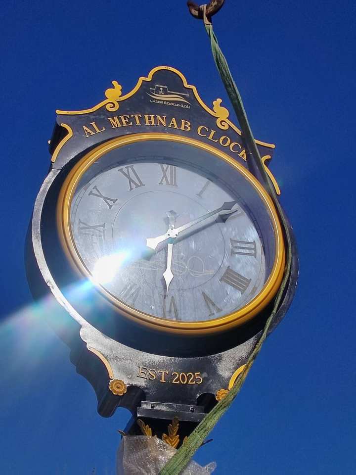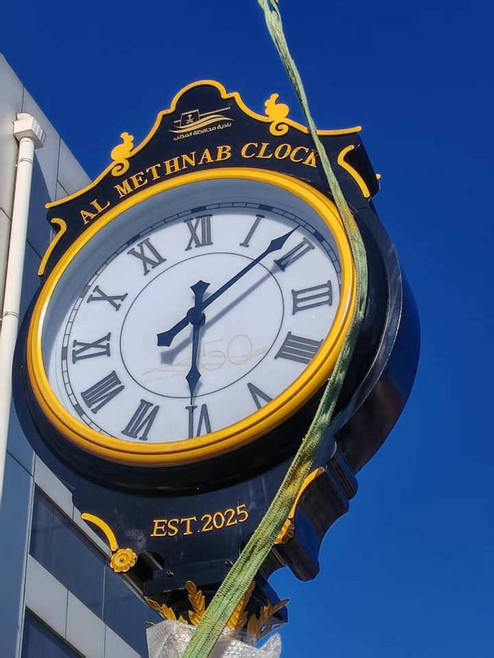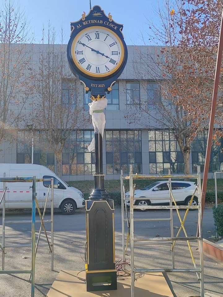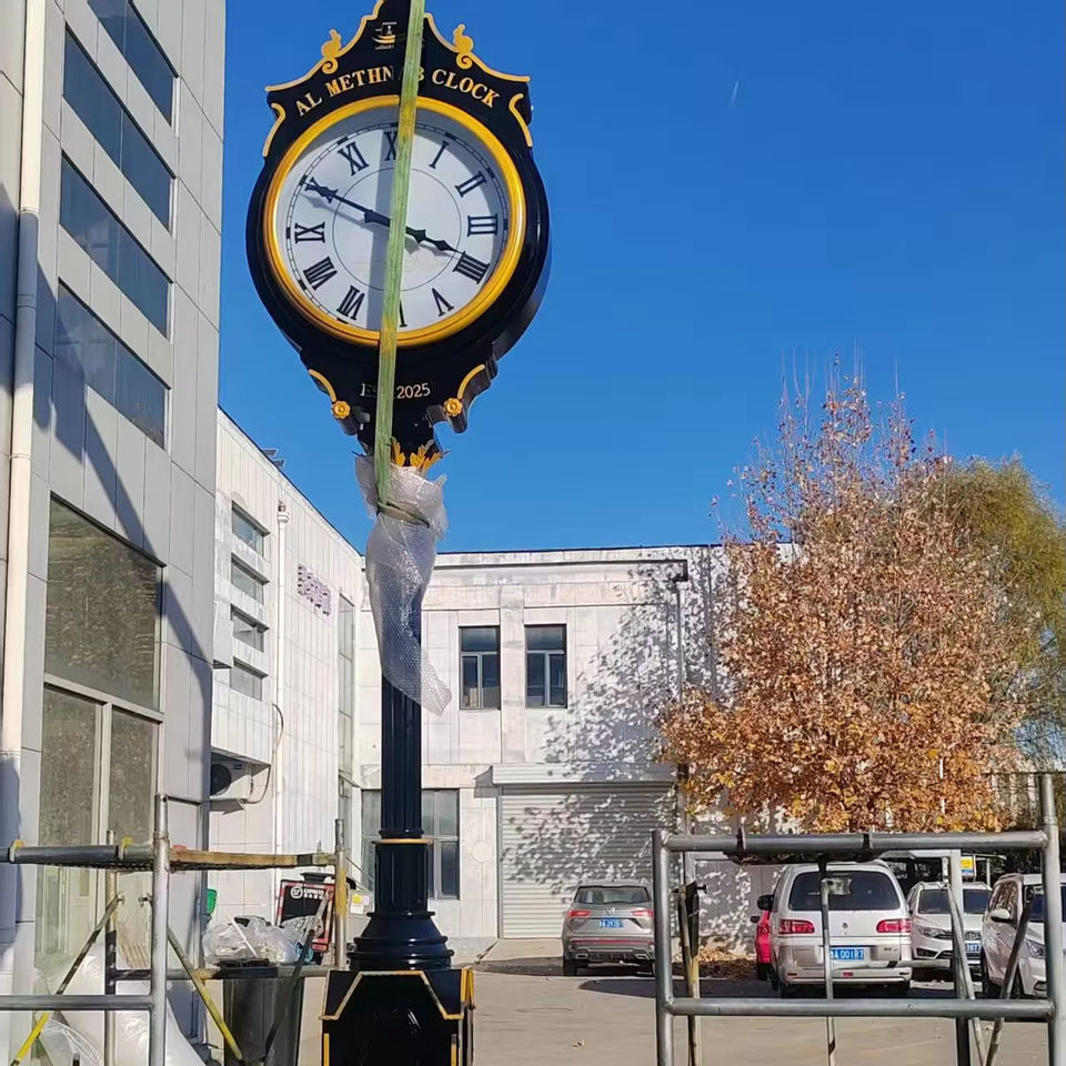 Horloge de rue et de paysage extérieur personnalisée de 3 mètres, à mouvement mécanique automatique par satellite, en métal, avec affichage à aiguilles et radio