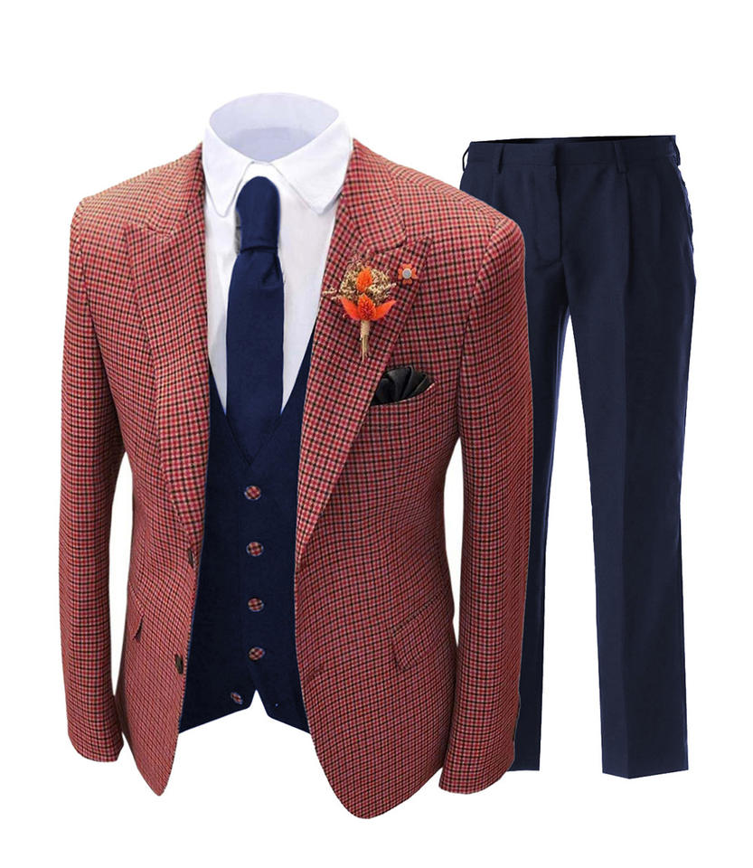 Costumes pour hommes 3 pièces personnalisés robe de mariée performance banquet scène chœur blazer à carreaux ensemble de costumes pantalon et gilet