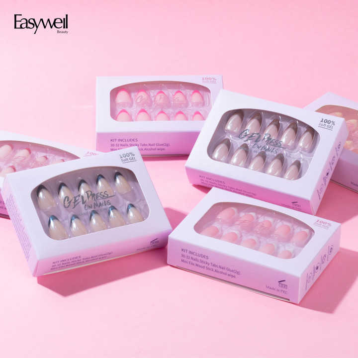 Faux Ongles Acryliques de Luxe Personnalisés (30 Pièces) à Presser avec Boîte d'Emballage Luxe, Étiquette Privée, Vente en Gros de Faux Ongles en Gel à Presser