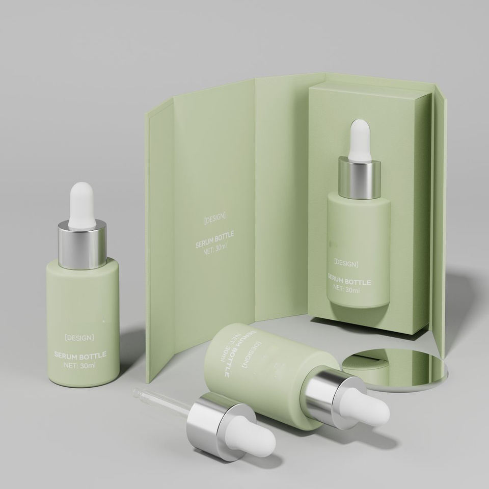 Emballage cosmétique rond personnalisé de 30 ml, flacon vide en verre givré pour sérum pour le visage, lotion, fond de teint, flacon de sérum avec compte-gouttes