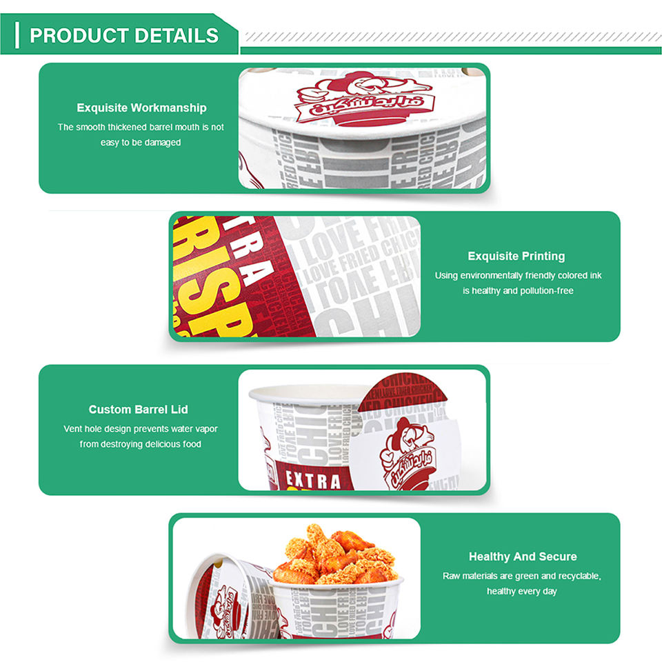 Nom du produit:* **Popcorn cup:** Gobelet à pop-corn * **Chicken bucket:** Seau à poulet