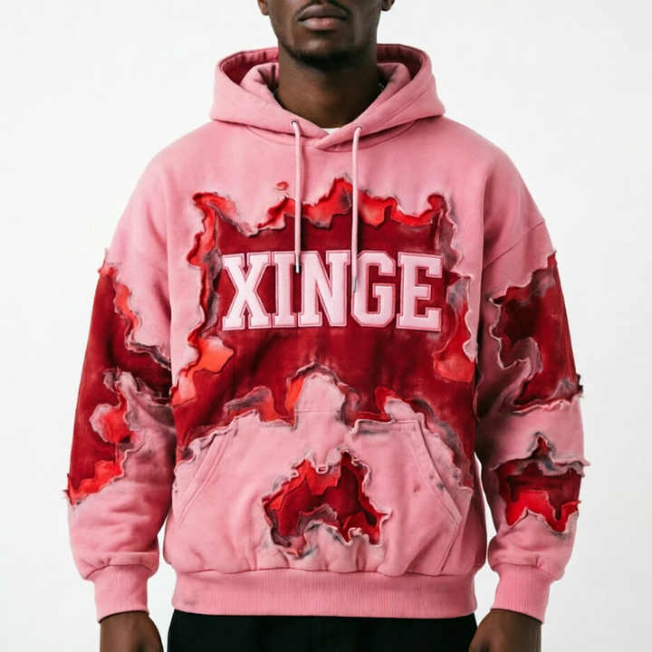 Sweat-shirts à capuche pour hommes personnalisés, 320 GSM, coupe courte, effet vieilli, broderie de patchs, sweats à capuche épais, 100% coton, sweat à capuche gaufré pour hommes