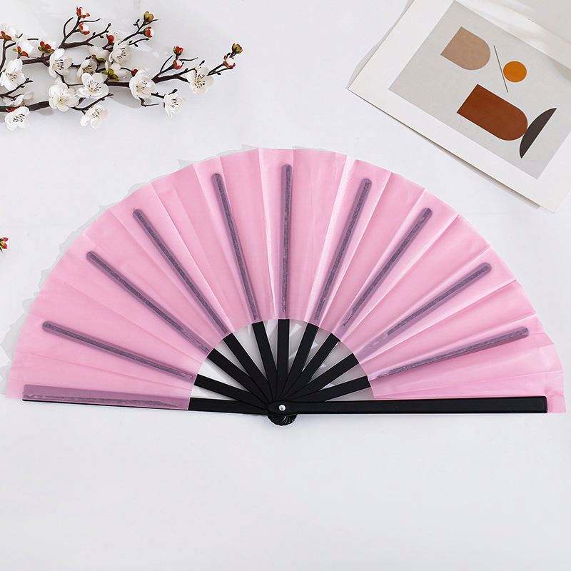 Éventail pliant personnalisé de 33 cm, grand, coloré, en plastique, modèle sculpté, portable, pour décoration de fête, publicité, sport