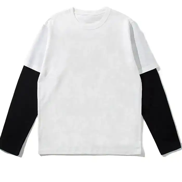Personnalisé 350 Gsm Couleur Unie Double Couche De Base Chemise Pour Hommes Deux Pièces À Manches Lâches Bord Cou À Manches Longues Pur Coton De Base