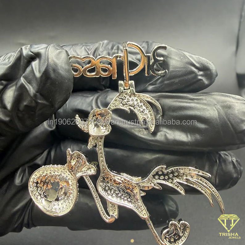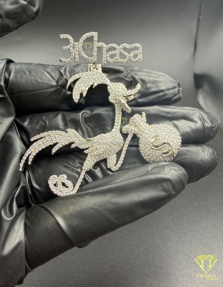 Pendentif personnalisé 3Chasa Iced Out en diamant, motif sac d'argent de personnage de dessin animé, chaîne de déclaration Hip Hop, breloque tendance