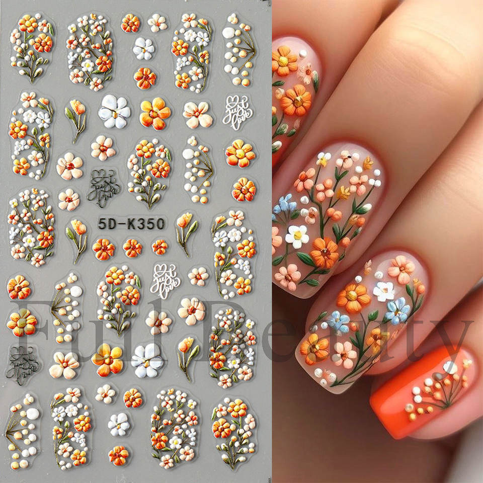 Nom du produit:Autocollants pour ongles personnalisés avec fleurs en relief 3D/5D pour produits de beauté