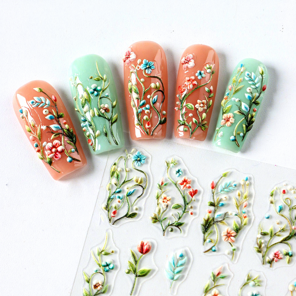Autocollants pour ongles personnalisés avec fleurs en relief 3D/5D pour produits de beauté
