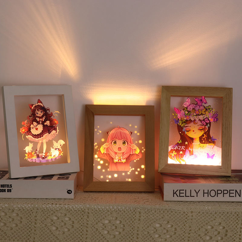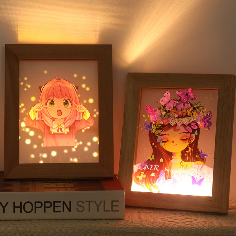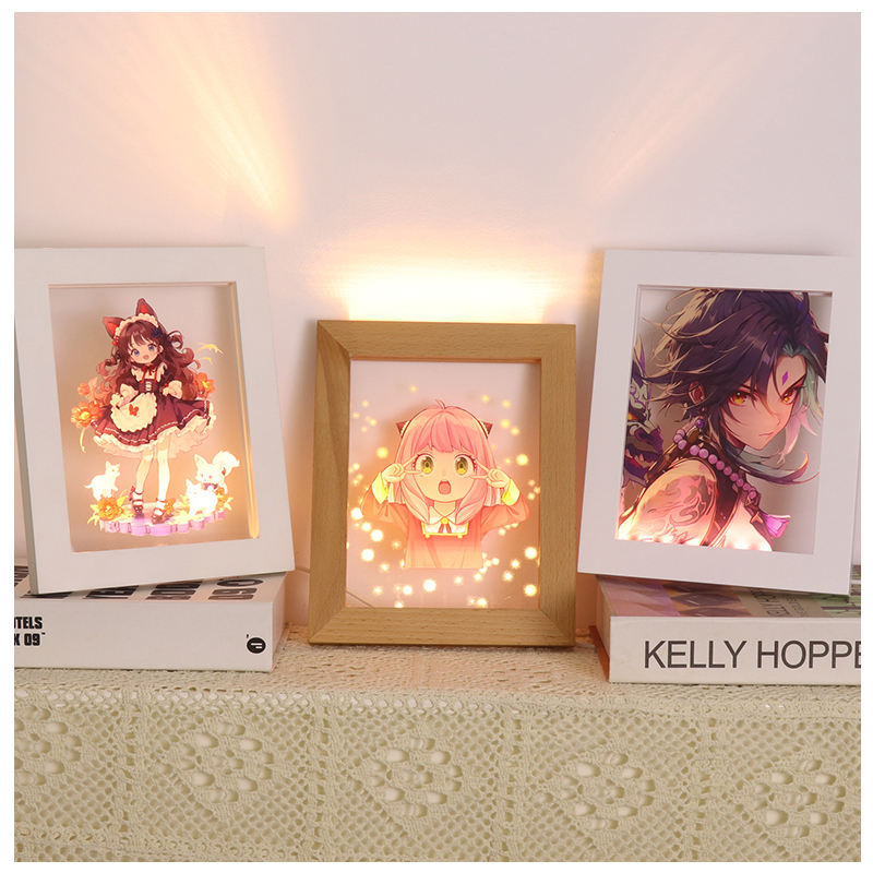 Cadre photo acrylique de personnage d'anime 3D personnalisé Décoration de chevet en bois à LED pour cadeau Quadraticel Ement