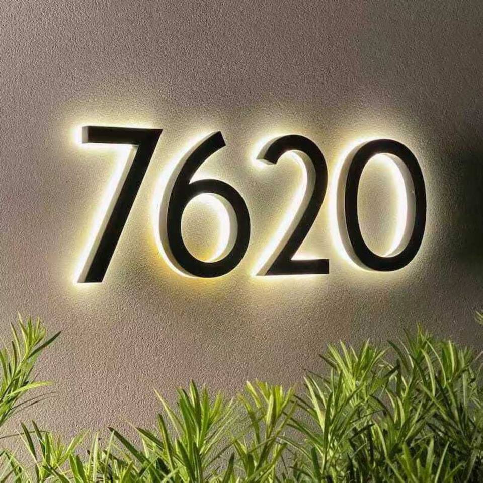 Signe de numéro de maison LED rétro-éclairé 3D personnalisé Transformateur de panneau d'adresse électronique solaire acrylique en acier inoxydable Décoration publicitaire