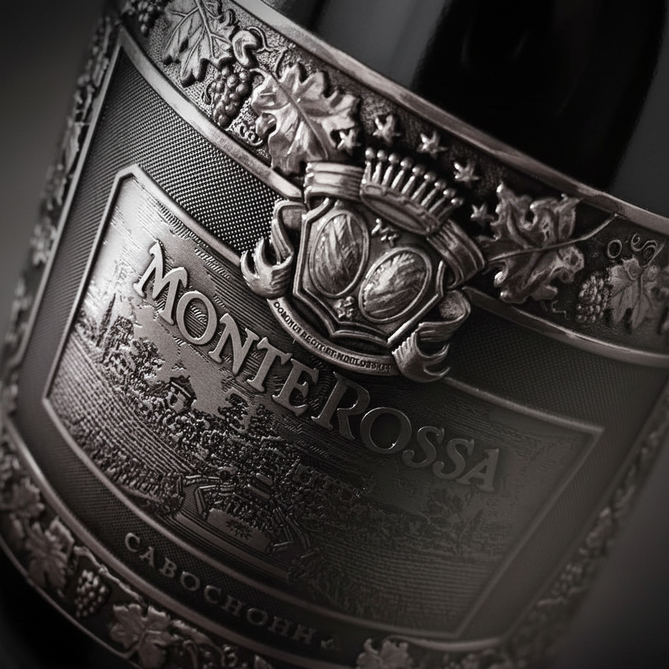 Étiquette de vin en aluminium de luxe en relief 3D personnalisée, durable, imperméable, adhésive, imprimée en UV, feuille d'or, whisky, vodka, boissons énergisantes