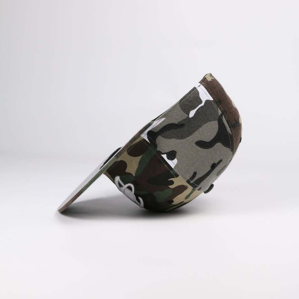 Casquette de baseball 5 panneaux personnalisée avec broderie 3D, 100% coton, unisexe, design de personnage sportif avec motif camouflage
