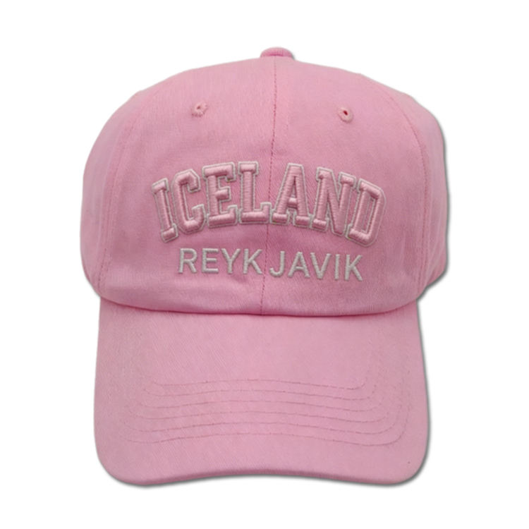 Casquette de baseball rose personnalisée avec logo brodé 3D, souvenir de Reykjavik, Islande