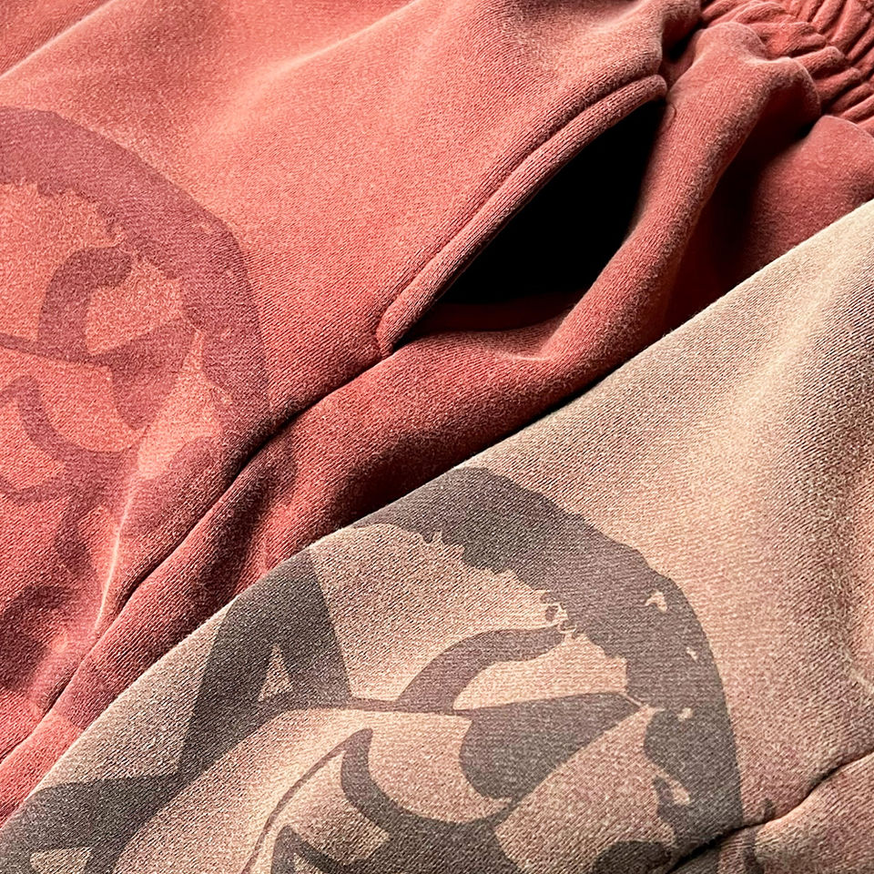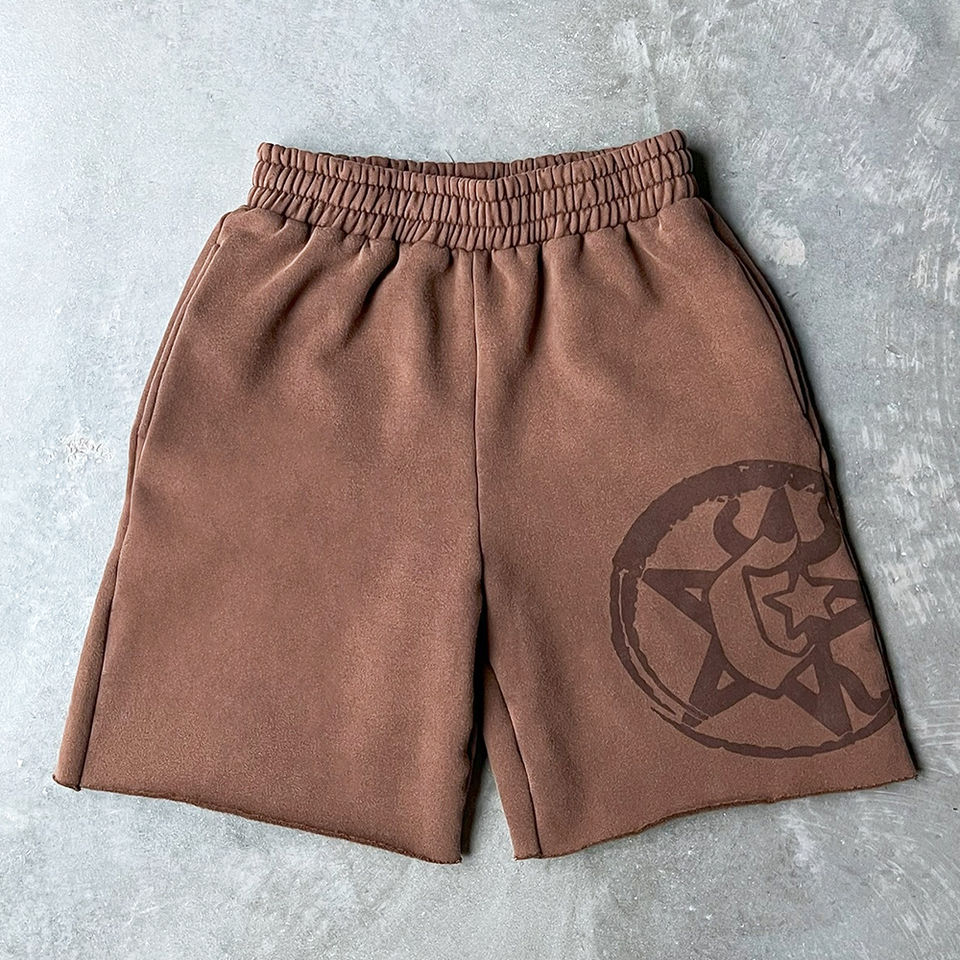 Ensemble short et sweat à capuche oversize en molleton 100 % coton épais, coupe carrée, avec broderie 3D personnalisée et imprimé vintage délavé