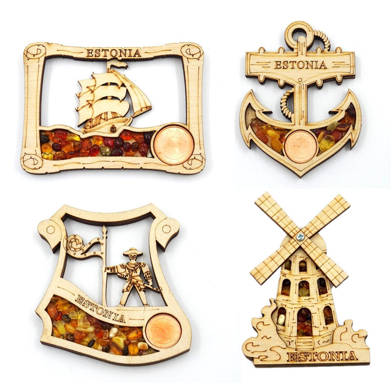Aimant de réfrigérateur en bois laser 3D personnalisé Danemark Suède TROLL VIKING Finlande Prague Estonie Aimant de réfrigérateur MDF avec pierre d'ambre