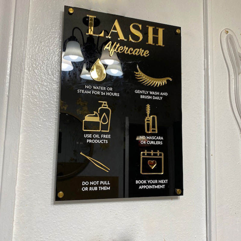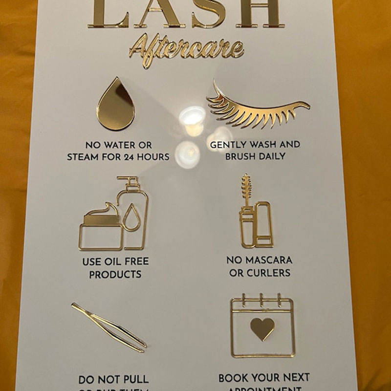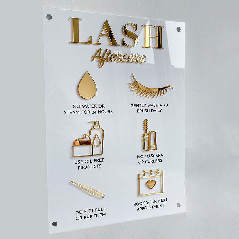 Signe 3D personnalisé de conseil après soin des ongles cils Signe acrylique Signe d'esthétique de salon de beauté