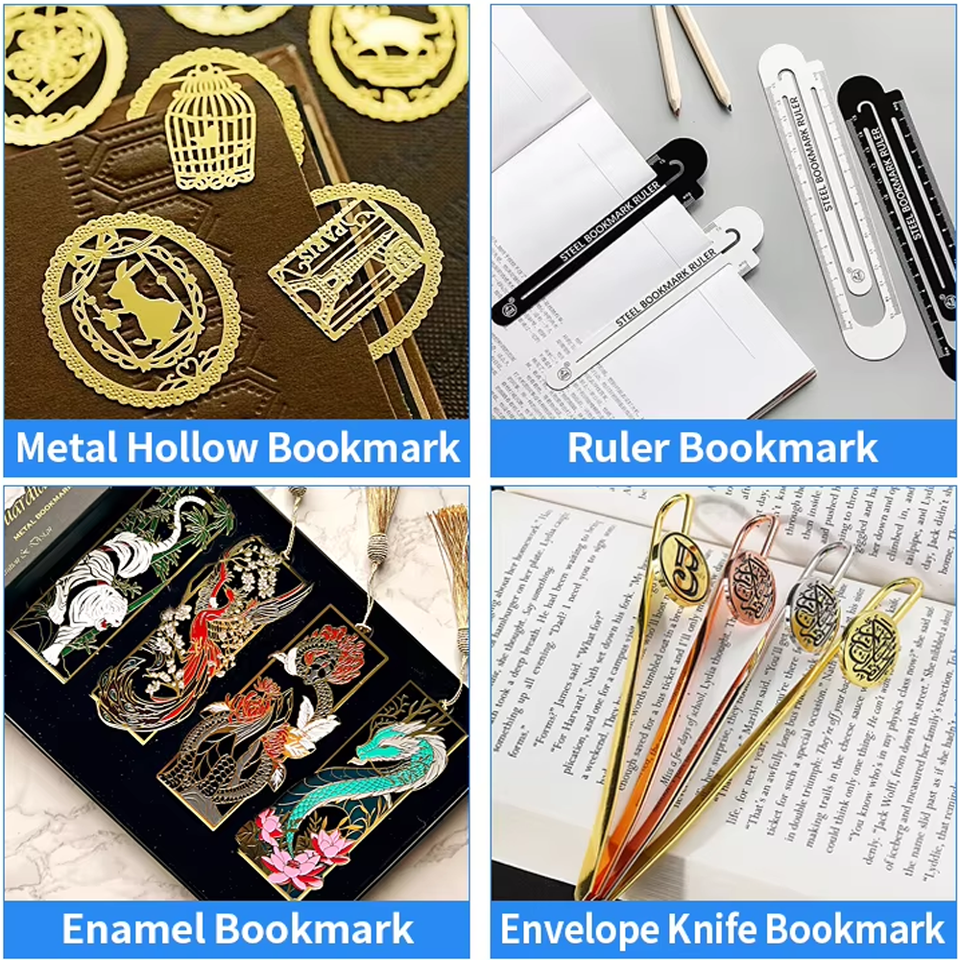 Marque-page personnalisé avec logo 3D en laiton plaqué métal doré découpé au laser Cadeau pour les amoureux des livres Coupe-enveloppe évidé Marque-page végétal en cuivre