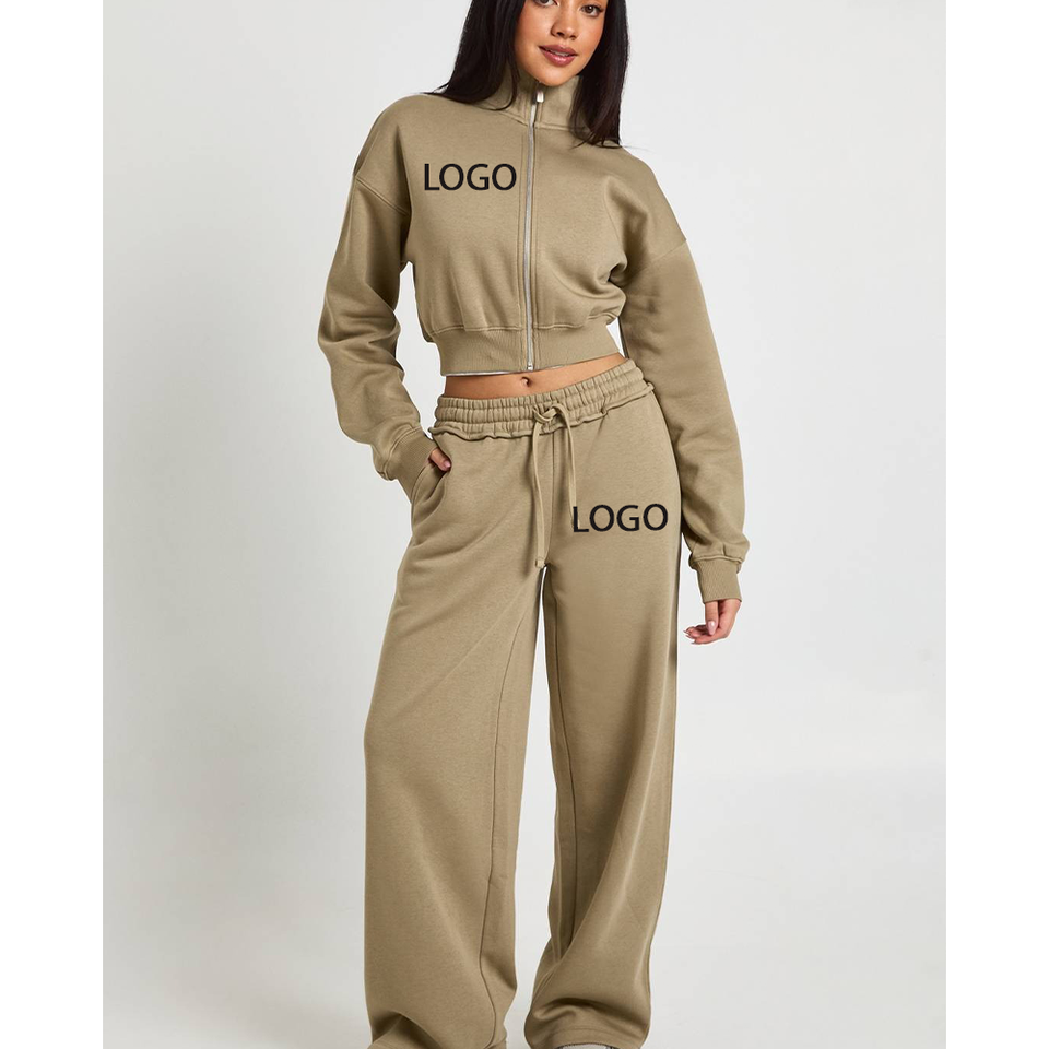 Ensemble 2 pièces personnalisé avec logo 3D, survêtement de sport en molleton de coton à fermeture éclair, col montant, pour course, cyclisme, jogging, streetwear hiver