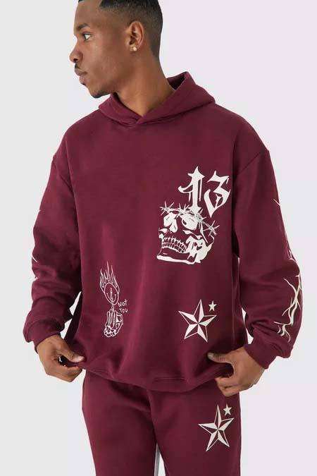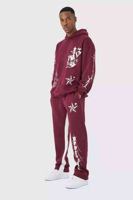 Ensemble de survêtement en molleton à impression 3D personnalisée, deux pièces, jogging en coton surdimensionné, pantalon de survêtement évasé et sweat-shirt pour homme