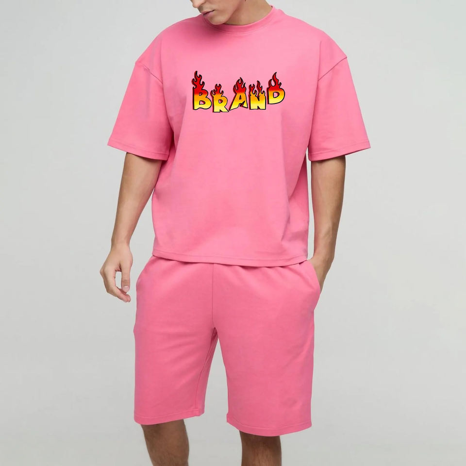 Ensemble de shorts pour hommes 100% coton respirant rose uni confortable pour l'été Logo imprimé en 3D lourd
