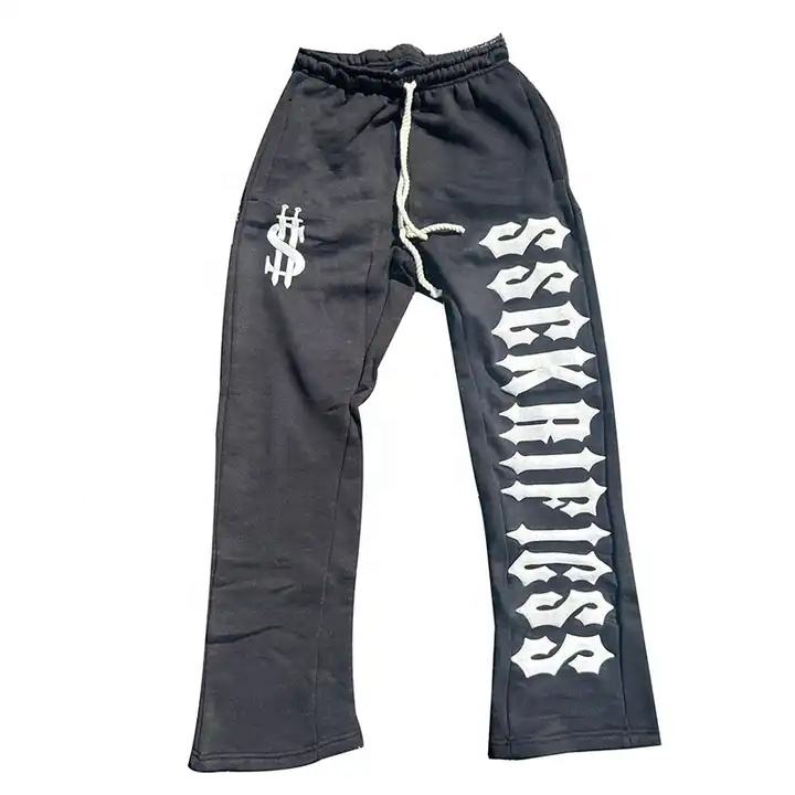 Personnalisé en détresse Patch Flare pantalons de survêtement hommes soleil fané français éponge empilé pantalon unisexe Streetwear lavé à l'acide Flare pantalons de survêtement