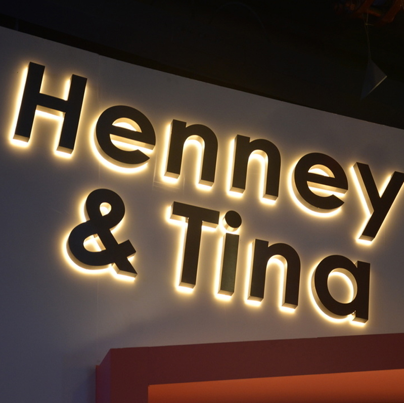 Lettres en relief 3D personnalisées rétroéclairées en acier inoxydable, logo métallique rétroéclairé pour enseignes extérieures de maison