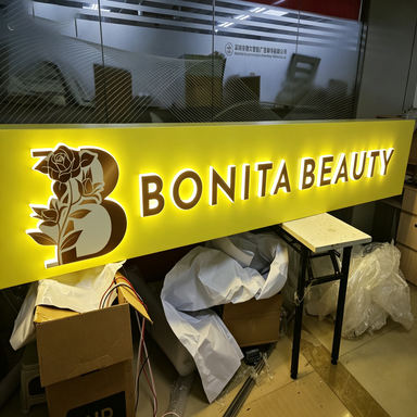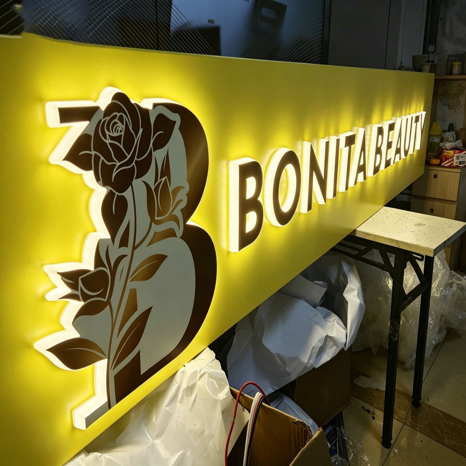 Enseigne lumineuse LED personnalisée en acier inoxydable et acrylique 3D pour usage commercial extérieur, installation facile, forme rectangulaire