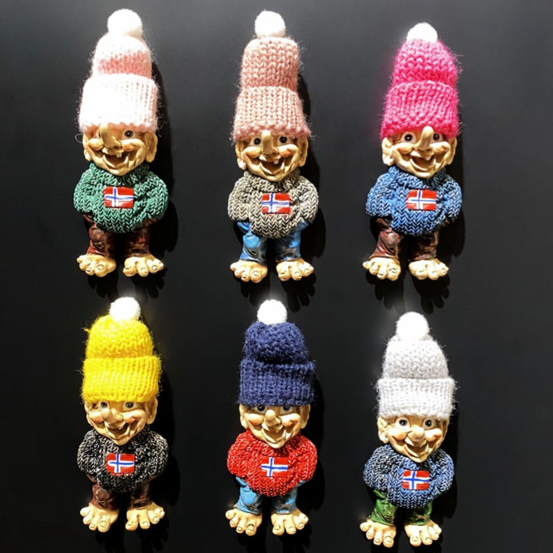 Troll-man 3D personnalisé avec chapeau tricoté Figurines norvégiennes en polystone portant des bonnets tricotés Souvenir aimant de réfrigérateur