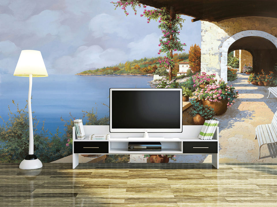 Impression 3d personnalisée photo paysage marin papier peint mural bâtiment arbre fleur plante vue sur la mer paysage papier peint mural papier peint pour la maison