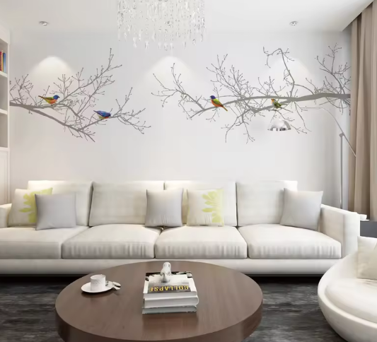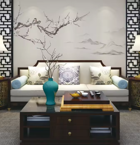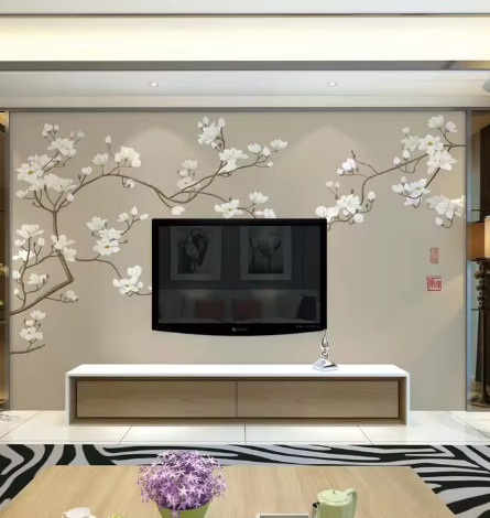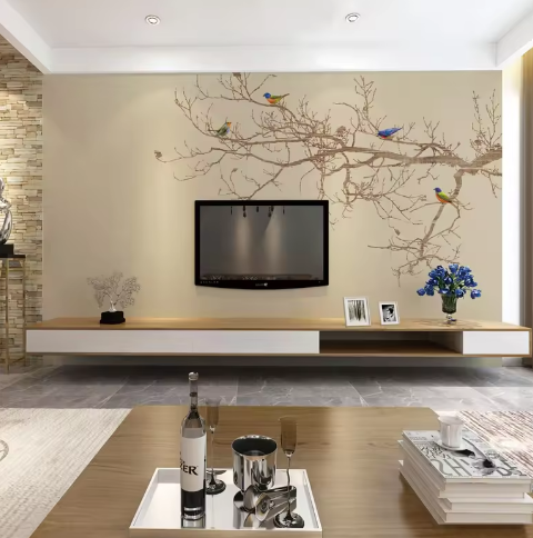 Papier peint mural personnalisé imprimé en 3D, style peinture chinoise, paysage naturel, plante, arbre, montagne, fleurs, oiseaux, chinoiserie