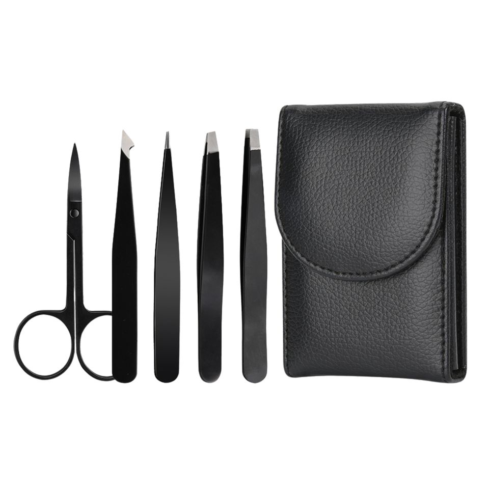 Ensemble de pinces à épiler pour cils et sourcils en acier inoxydable noir personnalisé, 3, 4 ou 5 pièces, avec ciseaux, outils de soin beauté