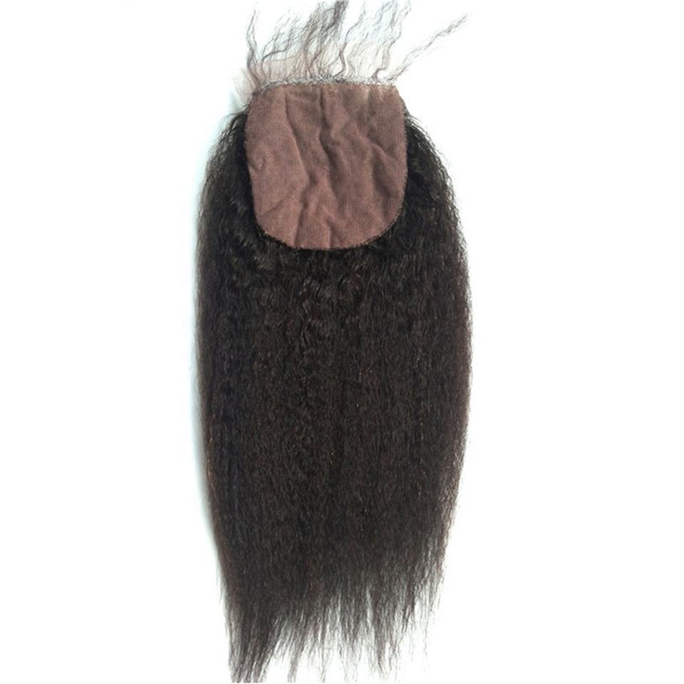 Personnalisé 4*4 Soie Base Fermeture Grossier Crépus Droite Fermeture de Cheveux Humains Suisse Invisible Fermeture Femmes Cheveux Topper Pièces