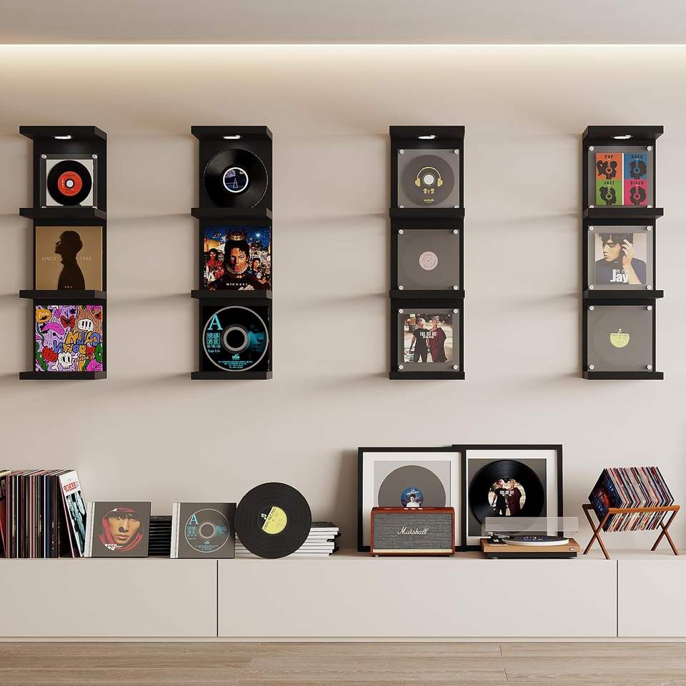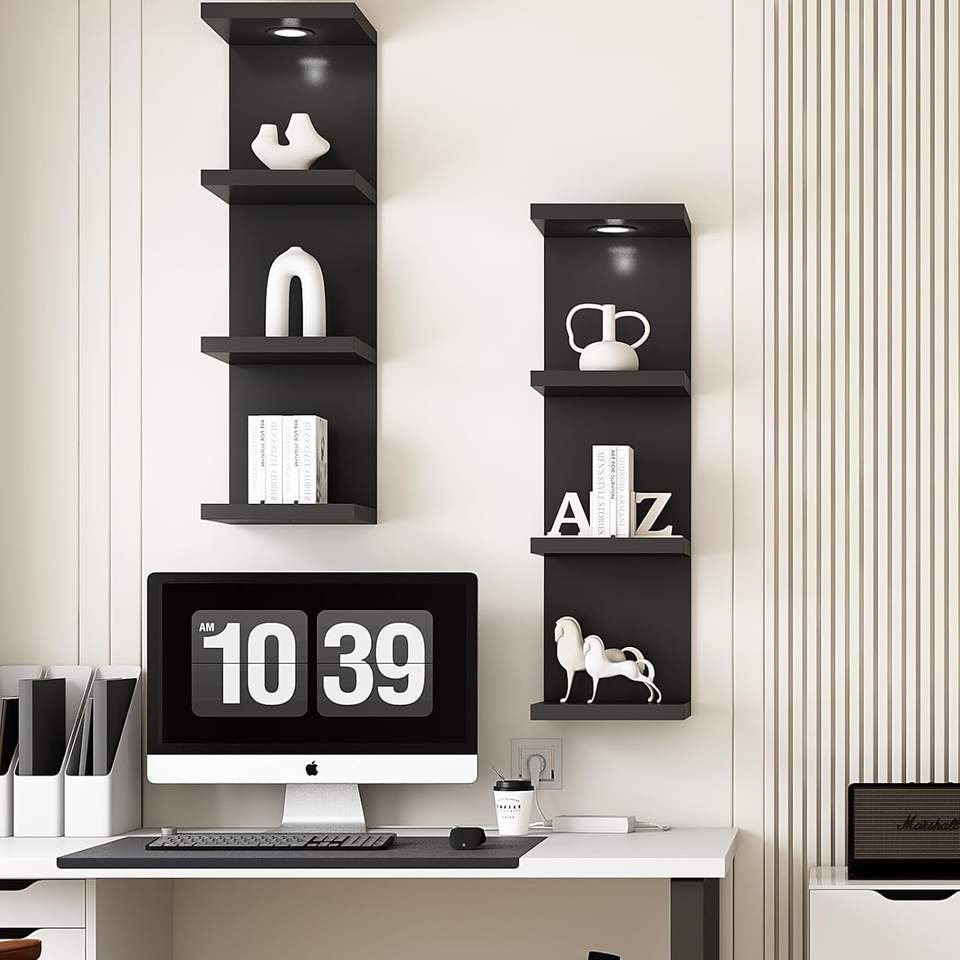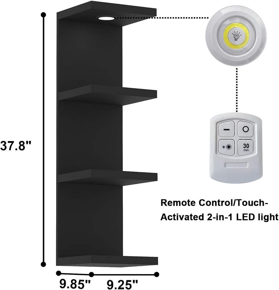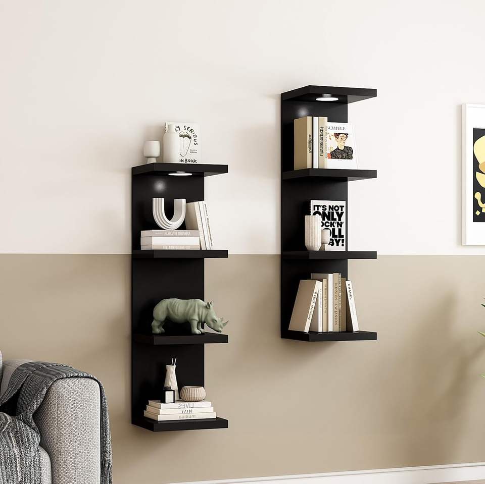 Étagère murale moderne à 4 niveaux personnalisée présentoir noir étagères flottantes étagère flottante en bois avec lumière