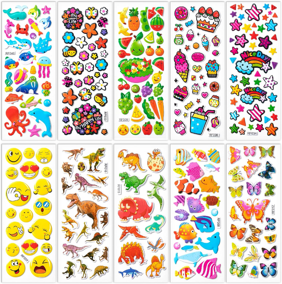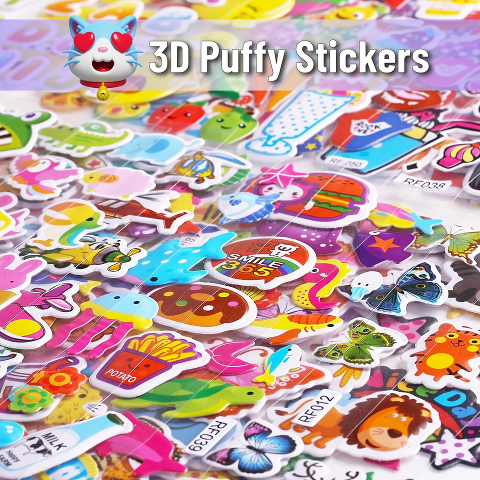 Autocollants miniatures en PVC 3D imprimés UV, personnalisés, 40 feuilles, thèmes variés, autocollants de dessins animés en relief, autocollants imperméables, cadeaux promotionnels pour chiots