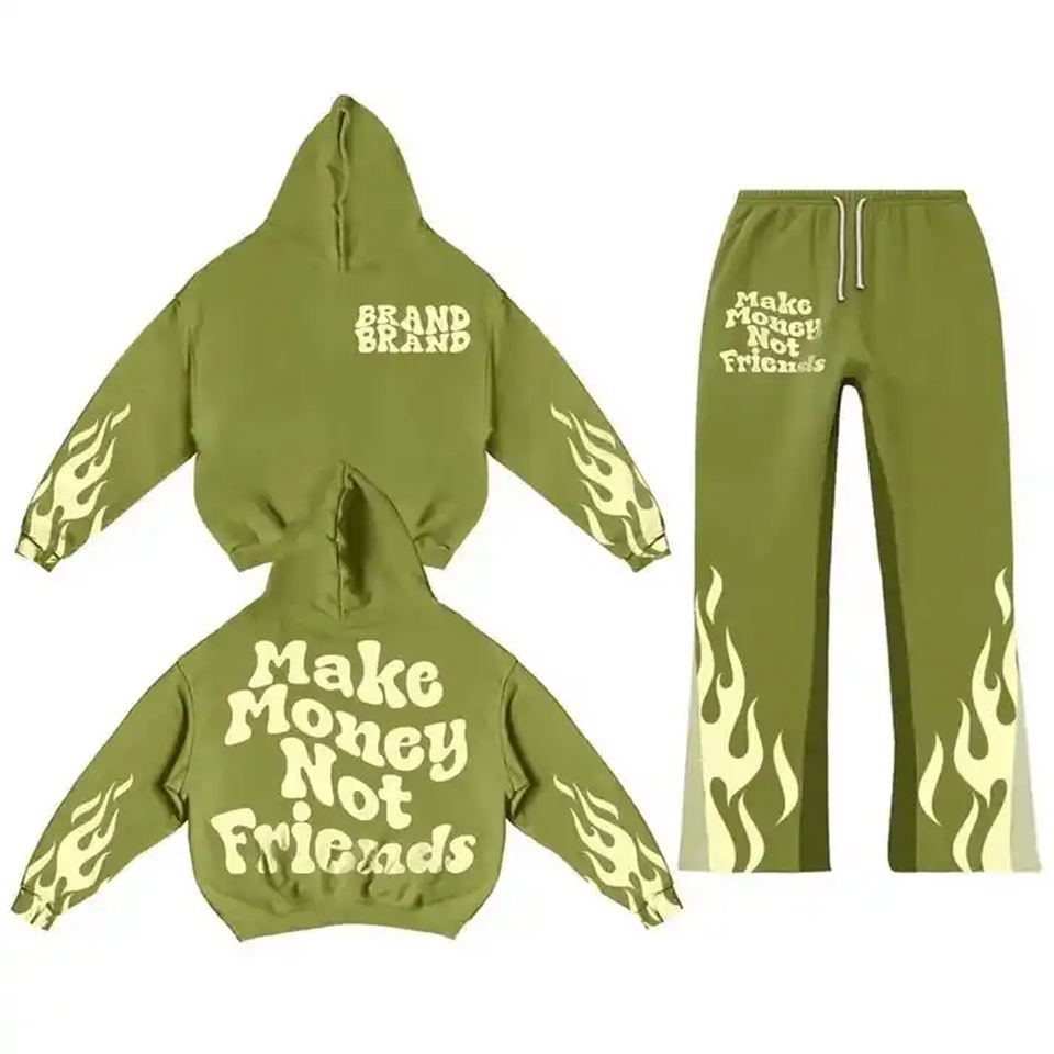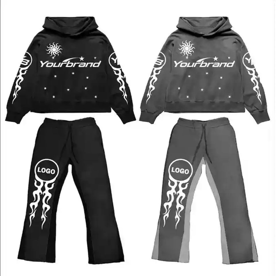 Personnalisé 450 500gsm Hommes Jogger Survêtement Hommes Lourd Baggy Pantalon De Survêtement À Capuche Flare Sweat Pantalon À Capuche Ensembles Survêtement Hommes
